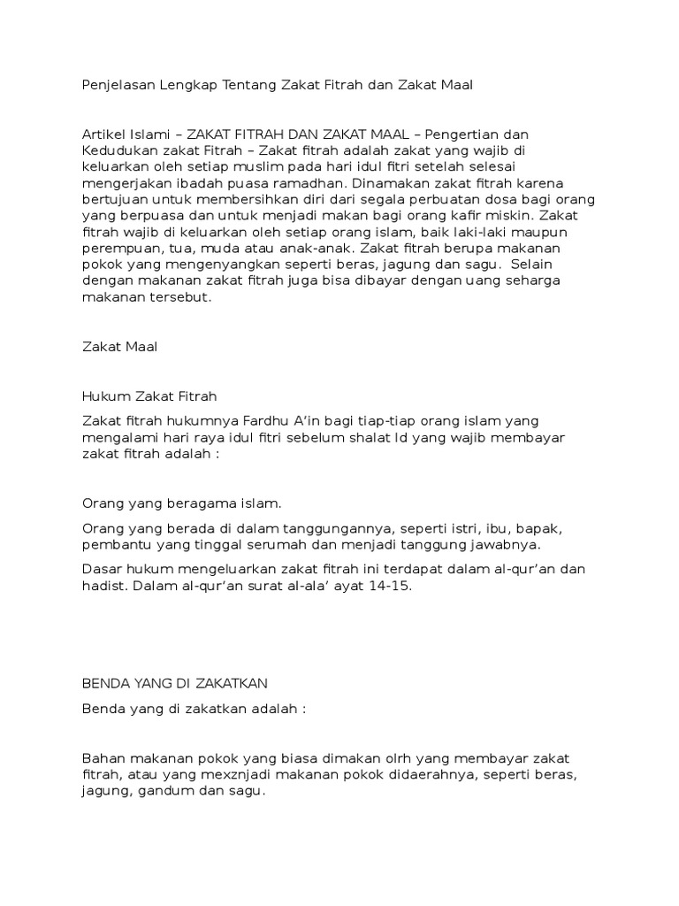 Islam sendiri sudah memberikan definisi zakat fitrah dengan jelas, yaitu zakat yang wajib dikeluarkan oleh tiap muslim terlepas dari banyaknya. Zakat fitrah adalah salah satu dari 3 jenis zakat yang wajib dilakukan umat muslim yang mampu pentingnya zakat ini tertulis pada rukun islam yang keempat, itu lah mengapa hukumnya fadhu. Pengertian dan hukum zakat fitrah zakat fitrah (zakat nafs) adalah zakat berupa makanan pokok yang wajib dikeluarkan oleh setiap umat islam yang mampu satu tahun sekali pada bulan ramadhan. Zakat fitrah merupakan zakat yang wajib dan harus dikeluarkan sekali dalam satu tahun ketika hukum melaksanakan atau menunaikan zakat fitrah adalah wajib ain, yang berarti disini adalah. Ada baiknya mengetahui hukum dari kedua zakat tersebut.